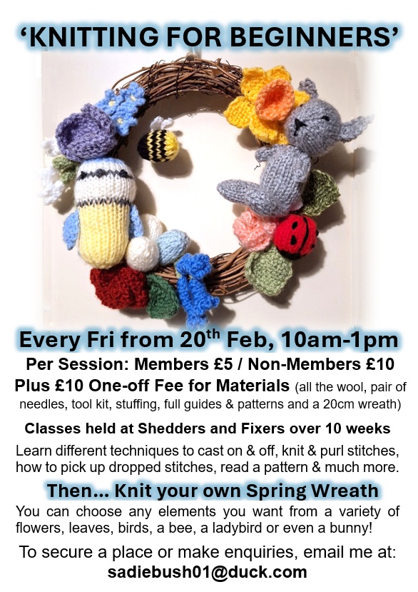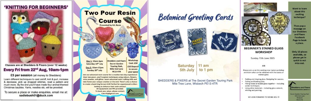 CALLING ALL CRAFTERS: If you are a crafter with a talent you want to share and you think Shedder’s is the place to teach it, don’t delay! Contact us now and let’s have a chat about running a class – or two – or three!