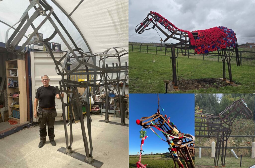 - Therapeutic Community Farm: Designed and made a large-scale metalwork sculpture of a horse – named ‘Sonic’. The Wisbech Yarnbombers have since covered Sonic in crocheted poppies for Armed Forces Day, and turned him into a reindeer for Christmas.